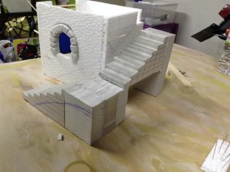 Hola. Esto cuando empiezas ya no puedes parar. Como segunda casa para el pueblecito que estoy planeando he hecho una casa con escalera exterior y un palomar en la terraza. Es para el belén de este año que ponemos en casa, con figuras de 10 cm. Falta algún retoque de pintura al palomar y poner los detallitos y las palomas. Todo 100% aprendido en el foro, he ido copiando aquí y allá. Muchas gracias a todos. Os pongo las fotos para que veáis el proceso.
