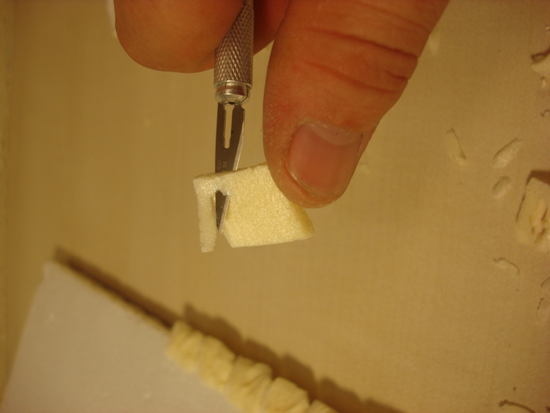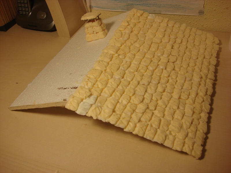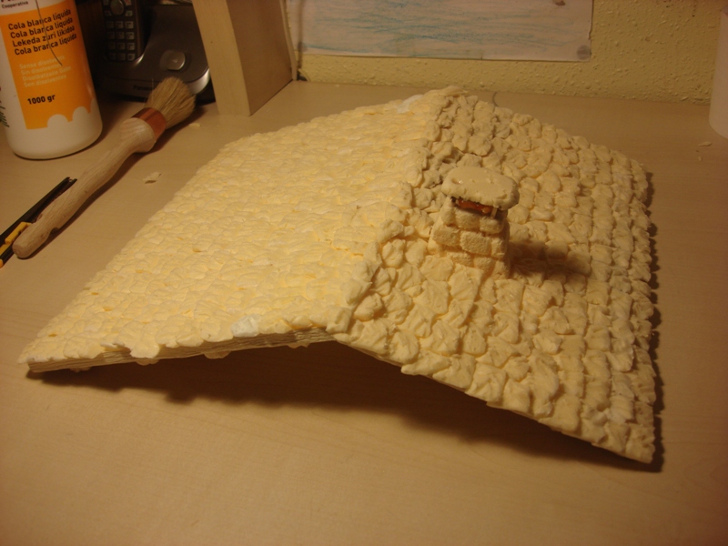 La chimenea también está hecha con poliestireno extruído. Un dato es que está hueca por dentro, por si en un futuro se me ocurriera ponerle una máquina de imitación a humo (vapor de agua).
