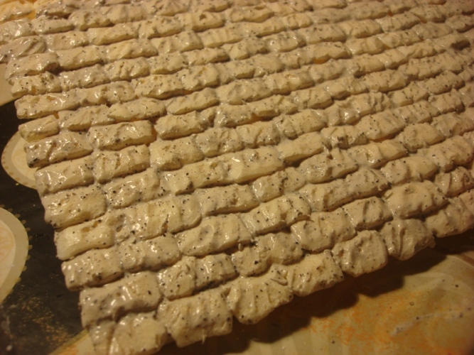 Una vez todo seco, hice una mezcla de yeso muy diluído en agua (algo parecido a un yogourt líquido) y pinté con un pincel toda la superficie. Al yeso, le eché posos de café y un poco de tierra (técnica aprendida de los Italianos, gracias a los DVD de Fabiowarrior1).