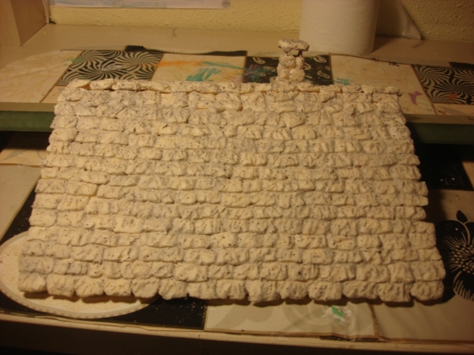 Otro consejo, es que en alguna zona al manipularlo, se me ha roto el yeso y se han caído trozos (que después volví a pegar con cola blanca). Supongo que haciendo algunas irregularidades en el porex, agarrará mejor, o bien, pegando unas gasas o vendas previamente a la aplicación del yeso. Realmente tampoco ha sido un gran problema pues no se han caído muchos trozos, pero llegué a asustarme...