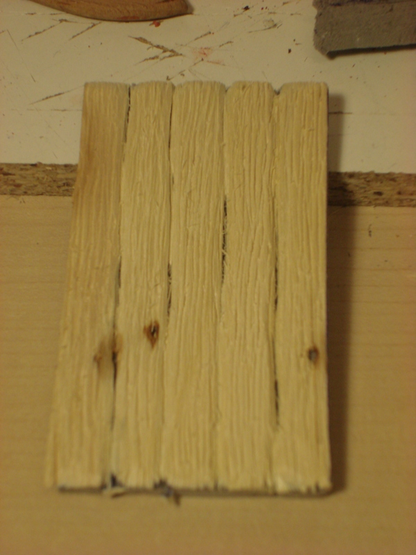 Con pequeños trozos, hacemos (siguiendo al misma operación anterior) los tablones que unirían al resto para formar las puertas y ventanas.