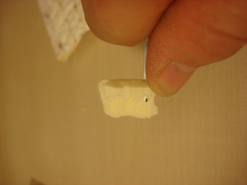 Otro consejo, es que en alguna zona al manipularlo, se me ha roto el yeso y se han caído trozos (que después volví a pegar con cola blanca). Supongo que haciendo algunas irregularidades en el porex, agarrará mejor, o bien, pegando unas gasas o vendas previamente a la aplicación del yeso. Realmente tampoco ha sido un gran problema pues no se han caído muchos trozos, pero llegué a asustarme...