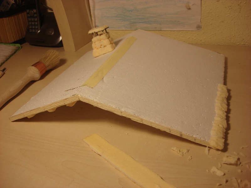 La chimenea también está hecha con poliestireno extruído. Un dato es que está hueca por dentro, por si en un futuro se me ocurriera ponerle una máquina de imitación a humo (vapor de agua).