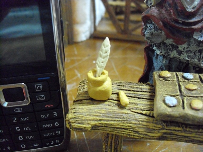 El diseño del tintero y pluma es de lola, acertada como siempre, la regla me lo comento y la he hecho hoy como veras es super facil de hacer jajajaja, no he necesitado ayuda y el pergamino tengo que arreglarlo, pero sin aguarrás, es de porex y se lo comera jajajaa.
