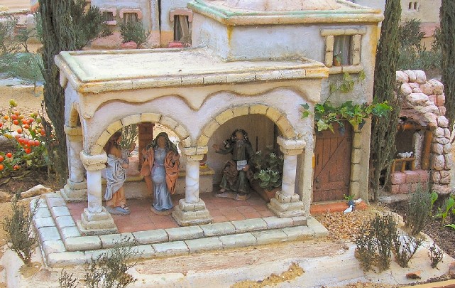 Saca las figuras fuera de la construcción, es más lógica, es más en casi todas las pelis que he visto esta escena, se ha visto en exterior, así que lo menos complicado es sacarlas fuera y alejarlas unos centímetros de la construcción, para conseguir algo de perspectiva.