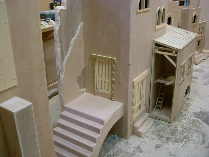 hola hay os pongo las imagenes de unas casas hechas por unos compañeros del trabajo .ya que estas casas an sido echas por encargo del ayuntamiento para el belen que se pone al aire libre en cuenca, como podeis ver el tamaño de estas es mas grande y estan echas con otros materiales distintos alos que solemos usar , espero que osgusten, y cuando esten pintadas pondre mas fotos