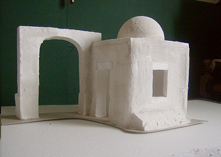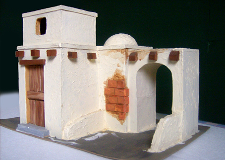 En esta imagen se ven unos bloques desproporcionados con relación al tamaño de la casa. Con semejantes bloques no queda espacio dentro de la casa, serían unas edificaciones monolíticas tipo piramide.