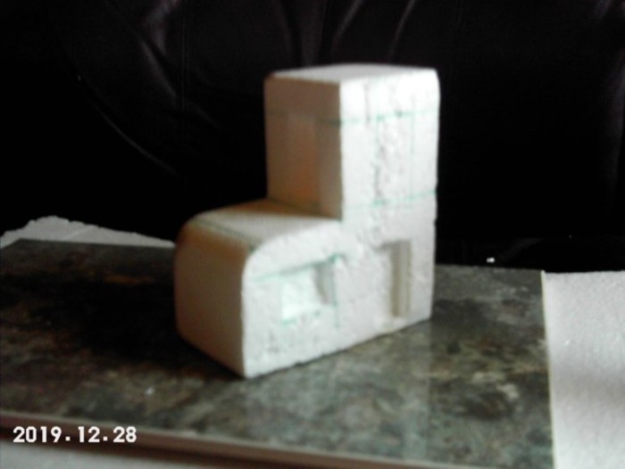 Encontré una pieza de corcho blanco de las que se usan para empaque y se me ocurrió sacar unas casas para la lejanía.