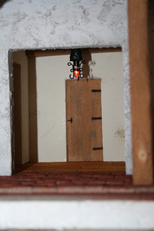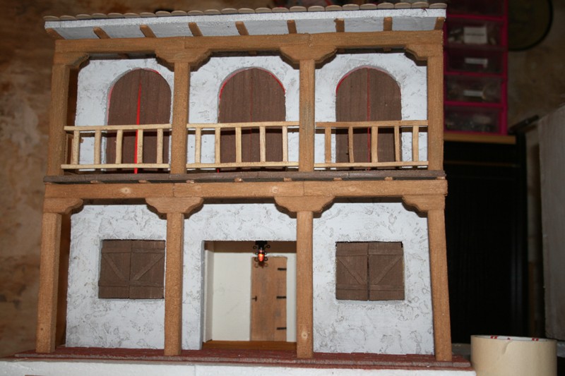 , 025.jpg (65KB - 148 descargas)Aqui pongo las fotos de la casa 2 ya terminada.Al final,en la entrada principal opte por hacer una entrada con 3 puertas para asi poder dejar las puertas sin poner o dejarlas abiertas(no se que hacer aun). El techo de la casa lo he construido con depresores de madera(los bastones que te pone el medico en la boca para mirar la garganta)La lampara de la entrada,esta hecha con un piloto de calentador de agua y alambre fino.A ver si os gusta