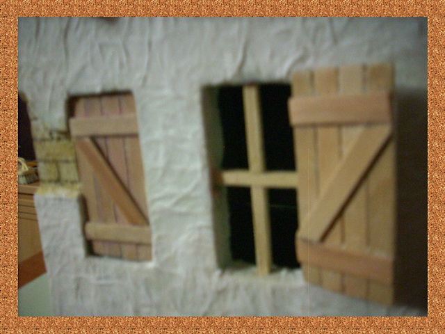 gracias a todos por vuestras palabras de animo, si sera pronto pero claro, es la primera vez de hacer esto y cuesta mucho mirar por aqui , por alla viendo como lo haceis los que ya estais tiempo, yo solo lo intento, espero mejorar y como se dice el alumno supera al maestro jajajaja ya quisiera yo, pero bueno estoy contento con el resultado, las puerta y las ventanas estan echas con los palitos de los helados hay que apañarse con todo y si las fotos son malas esta camara va con aceite es mas vieja que el hilo negro ya las hare con la otra, un besazo y abrazo y muchisimas gracias por estar ahi siempre se agradece.........