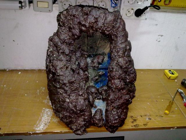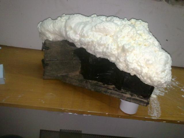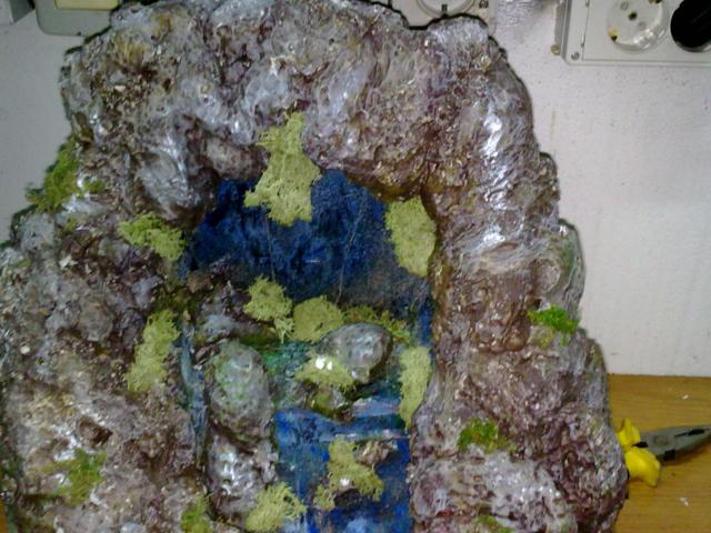 aqui una cascada de agua con espuma de poliuretano y tela asfaltica comprobada que no hace agua...