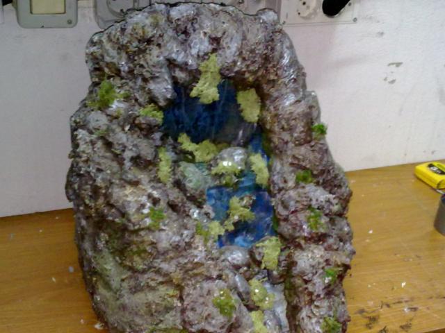 aqui una cascada de agua con espuma de poliuretano y tela asfaltica comprobada que no hace agua...