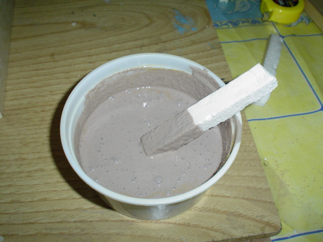 con agua la masa en de escayola con un poco de cola blanca para que no salte luego para ahorrar trabajo le pongo un poco de pintura