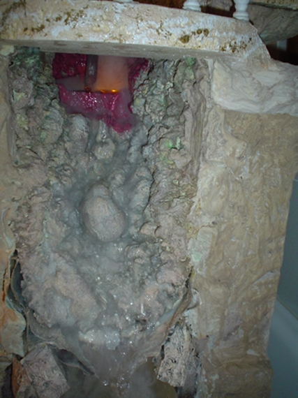 un poco de tinte para el color de fondo,la pintura rosa es antigoteras de todas formas no era necesaria porque el cauce esta forrado con plastico y no se sale el agua,
