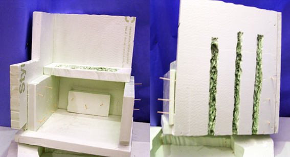muchas gracias por vuestro interés, utilizo porexpan de alta densidad de 3 cm., lo corto con cuter o una cortadora de porexpan casera, lo pego con cola blanca y lo sujeto con palillos.