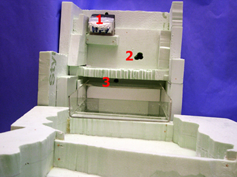 Foto 5 Elemento donde estará la cascada por delante y por detrás don se alojaran los tubos de tres bombas.