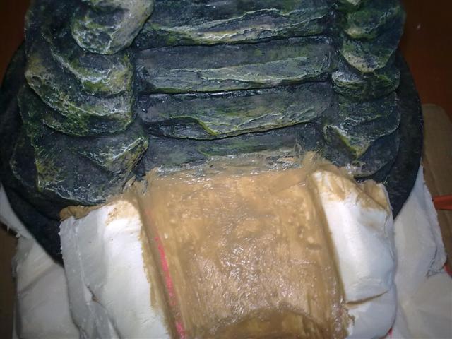 Para dar un poco más de gracia a la cascada hice dos escalones con porex que tallé con el cutter y lija simulando rocas. Para unir el primer escalon de rocas con la base de la fuente e impermeabilizar algo más usé silicona marrón. el resto de las piezas no están pegadas entre sí, para permitir el desmontaje.