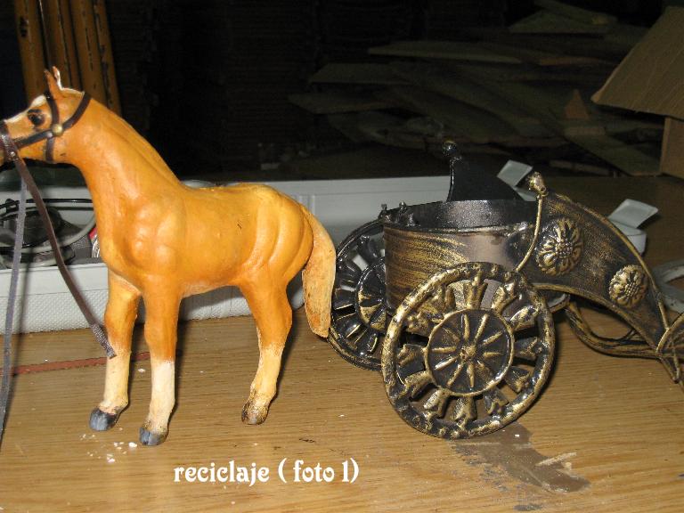 Hola amigos, esto es un trabajo realizado con un amigo al que ayudo en su Belén y que ha dado resultado esta cuadriga, que se nos ocurrió mientras hacíamos una compra en los chinos, por solo 8 € caballos incluidos, ¿que opináis?