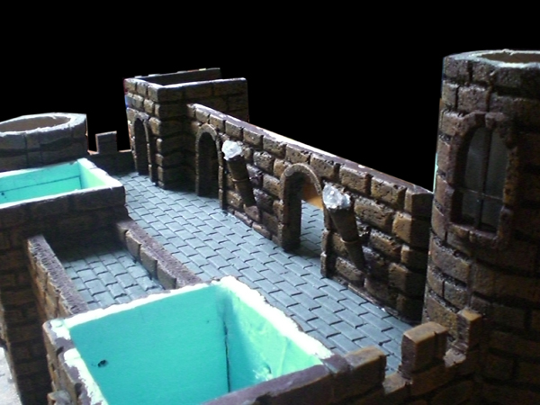 Sobre como he colocado las piedras de las torres, si os fijais en las fotos: 9, 10 y 16 es un tubo de espuma que una vez pegado al tubo de carton que hace de armazón, con el cúter hago la forma de las piedras, en la foto nº 10 es donde mejor se ve.