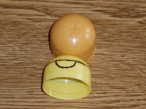 Satén con dos asas: trozo del pástico de un huevo de chocolate. Las asas se le pueden pegar o recortar de la misma pieza de plástico. (Cazuela4)