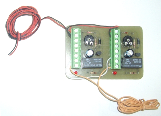 Aqui está el esquema, la alimentación es a 12 voltios, con los ajustes conseguimos retrasar el inicio entre 1 - 6 segundos, si utilizamos los contactos abierto y cerrado de una sección conseguimos una pulsación de 1 segundo, es necesario construir 2 unidades.