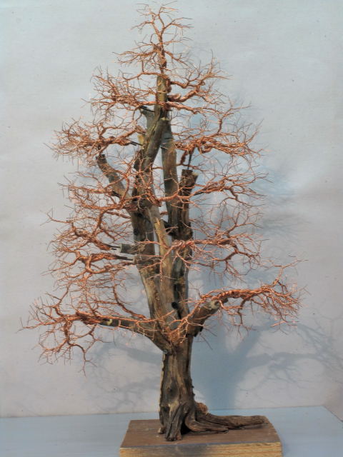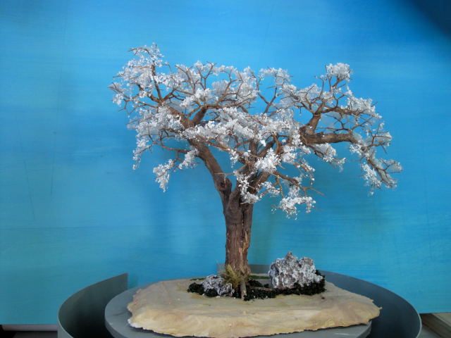 Se pegan (con pegamento en spray) sobre una fibra de poliester que se destiende sobre las ramas de alambre retorcido