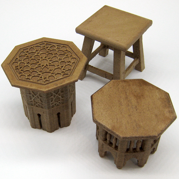Buenas tardes; os presento nuestra nueva colección de accesorios originales para belenismo realizados mediante impresión 3D. Están fabricados en PLA blanco y PLA Wood. Ambos son materiales plásticos, conteniendo el pla wood partículas de madera, que confiere a las piezas un aspecto final en tres tonos: ébano, nogal y madera natural. El pla blanco requiere trabajo de pintura para su acabado final, mientras que el pla wood, si se prefiere, puede ser utilizado directamente. El catálogo consta de varias referencias de celosías clásicas de tipo árabe hebreo y costumbrista, así como muebles y accesorios de arquitectura, como molduras para rematar aleros, ventanas y en breve, puertas y barandillas romanas. Los modelos están realizados en dos o tres tamaños, para figuras desde 14 cms. hasta 35-40 cms. Poco a poco, iremos ampliando las referencias. Nos gustaría conocer vuestra opinión y comentaros que estamos abiertos a estudiar vuestras sugerencias en cuanto a la creación de piezas que pudieran ser de vuestro interés.
