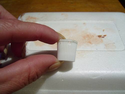 Les cuento, el pequeño balde esta relleno de silicona industrial, (o sea, la fria), que después de dejarla secar le dimos unos toques de celeste claro y en las puntitas que quedaron levantadas unos pequeños salpicones de blanco sucio.