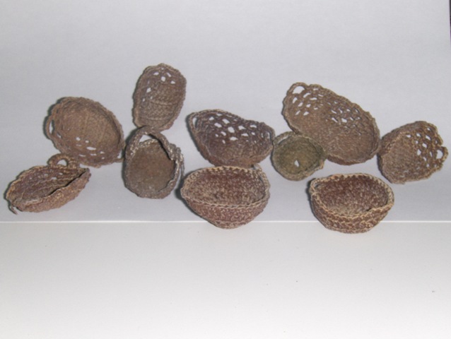 Hace algunos años mi madre,buena aficionada que era a los belenes me las hizo,yo solo las endurecí con agua cola y la pinté.Espero que os guste