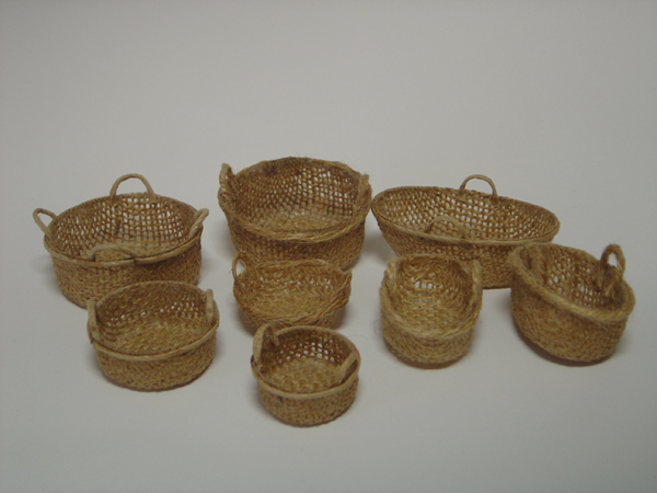 Buscamos objetos que nos puedan servir como molde para el fondo de las cestas que vamos a hacer, eligiendo con cuidado las medidas, cualquier cosa sirve.Necesitaremos unas hebras de la tela para hacer una trenza con la que formaremos el borde y las asas de las cestas, el número de hebras a utilizar depende de cómo nos guste la trenza, yo en este caso he utilizado 6.
