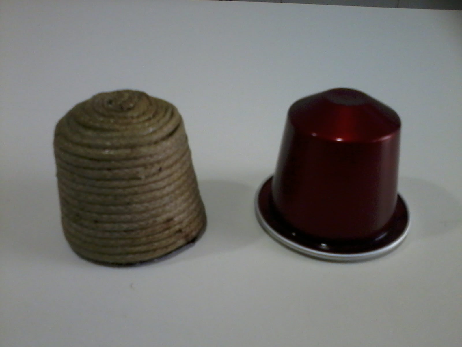 Os dejo unas imágenes de unos cestos que he hecho con las capsulas de café (este que se ha puesto ahora de moda), forrándolas de cuerda. A ver si me ayudáis a mejorarlas, la idea es rellenarlas de algo (paja, cereales, etc...).