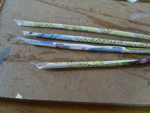 he utilizado el papel asi torzado, se pueden hacer individuales ,y con los canutos de papel haciamos collares