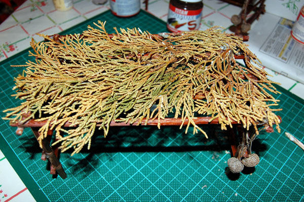 M Victoria: Me gusta tu chamizo, pero yo te haría una observación. En lugar de utilizar las hojas que has utilizado creo que te quedaría mejor con brezo. Hay un post sobre el tema(te lo pego aquí) en el ARTURO explica una manera muy práctica de pegarlo.