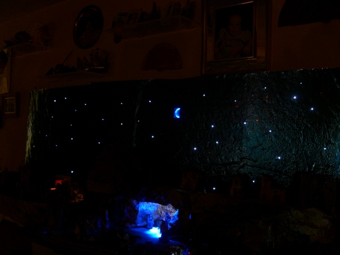 no las estrellas son fibra optica la luna y la luz del pesebre son led de alta luminusidad