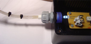 14) Para los que os atrevéis con todo realizamos el circuito de LED regulable con la única modificación que en la caja hemos colocado frente al LED el pasa cables por el cual nosotros pasamos el mazo de hilos de fibra óptica tal y como se ve en la imagen.
