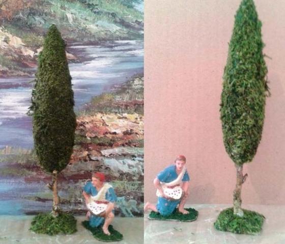 Buenas. Este es un ciprés realizado en poliestireno extruido fácil de hacer y que no necesita materiales complicados. Además queda bastante bien para principiantes.