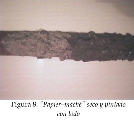 6) Pasadas cuanto menos 24 horas, y unas vez seguros de que el tronco está totalmente seco y duro al tacto procedemos a "pintarlo" con lodo: A una cucharada de tierra negra, libre de piedrecillas o ramas, añadimos la misma cantidad de agua y agitamos. Nunca debe añadirse más agua que tierra pues no dará el espesor que necesitamos (más o menos el mismo de la pintura acrílica). Hecho el lodo pintamos el tronco dando una capa lo más gruesa posible [Fig. 8].
