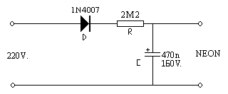 Unas veces he comprado los neones en una tienda de electrónica y el circuito funciona bien, con otros neones comprados en la misma tienda no funcionan a no ser que se varíe un poco el valor de la resistencia.