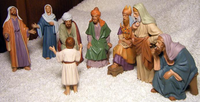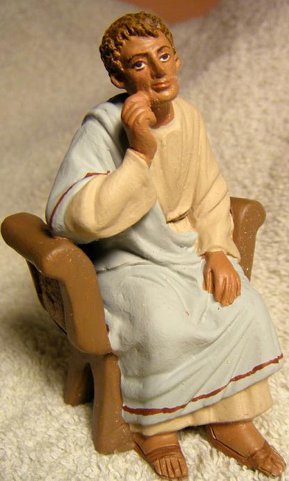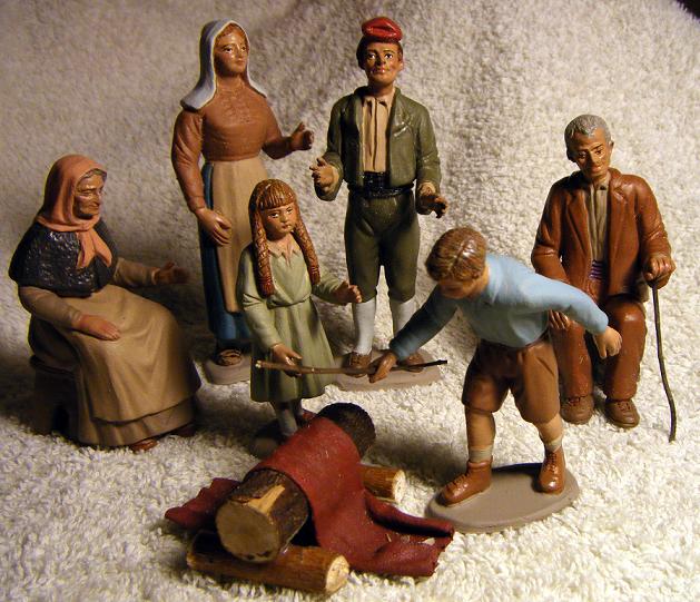 El Caga tió es una creación relativamente nueva, no viene de Martí, y adolece de bastante rigidez en la expresión, sobre todo de los brazos, y efectivamente, el padre y la madre miran de forma incorrecta... además de que la niña tiene los brazos desproporcionadamente largos... hay que decir que el problema se soluciona poniendo al padre de espaldas en el cuadro... y que además sirve para otros menesteres dentro del pesebre catalán de Castells, lo mismo que pasa con todas las demás figuras, hasta el niño, que puede estar jugando en cualquier rincón... con los defectos, me gusta... el belén vasco es una deliciosa miniatura, y los doctores, una pasada... (el San José es manifiestamente mejorable)