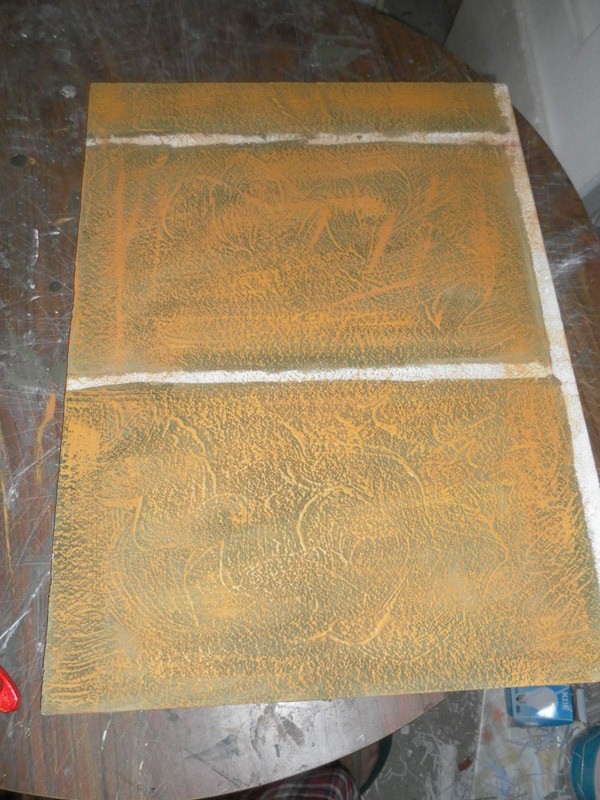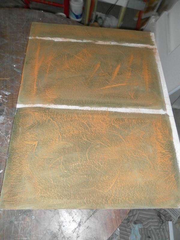 Tenemos ya pintado el interior de verde oscuro (1)(2), una vez seco se comienza a pintar, como al final quedara lo mas blanco posible y a penas se vera el interior, (osea el fondo del escayolado), nos saltamos unos pasos y comenzamos con mitad rojo oscuro, y mitad albero (3)(4), de este es mejor dar dos veces a pincel seco, ya que el verde oscuro absorbe la primera capa y se pierde. Una vez seca (que si no es una superficie grande, que de una mano a otra de tiempo a secar, es mejor esperar para que quede bien la definicion de los barridos, y si no se mezclaran. Cuando se sabe que se esta mezclando, es cuando se empieza a poner rosa, o de un color que no es el que tu estas utilizando). Acontinuacion se hecha un poco mas de albero, y se da otra mano (siempre a pincel saco) (5)(6), a continuacion un poco mas de albero (7)(8), la proxima se da albero solo (9)(10), a continuacion se le hecha al albero, blanco, pero poco, y se le da una mano (11)(12), luego se le hecha la mitad de albero y la mitad de blanco (13)(14), ahora algo mas de blanco y se le da una mano (15)(16), luego casi blanco (17)(18), en esta ocasion, solo blanco, pero con el color que queda en la brocha, se le da, pero algo mas cargado que a pincel seco, manchando algo mas de lo normal, para darle cuerpo al blanco que deve quedar (19)(20), a continuacion hacemos lo mismo, solo blanco, y con el color que tiene la brocha, pero dejando la brocha mas cargada, no en esceso, y con cuidado vamos rellenando muchos de los huecos que forma el escayolado, que aun no habia sido relleno, o se relleno con otro color (21)(22), en esta ocasion lo mismo, pero dandola cantidad de pintura suficiente para que quede todo "CASI" blanco, dando una mano de blanco en pincel semiseco, entreteniendote en dejar solo algo de lo oscuro, sea verde oscuro o de otro color, para que luego desde fuera se vea el contraste y las sombras del escayolado (23)(24).