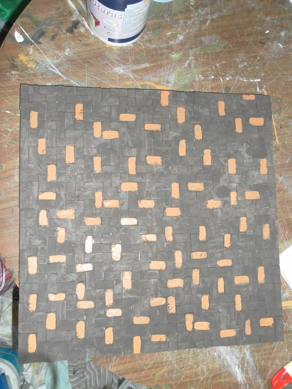 Entre mano y mano para no perder tiempo, he ido adelantando el suelo, pintando de vez en cuando una loza de rojo con albero mitad y mitad (25), entre otras dos manos, esperando a que seque, di otras con albero (26), y luego en rojo oscuro (27).