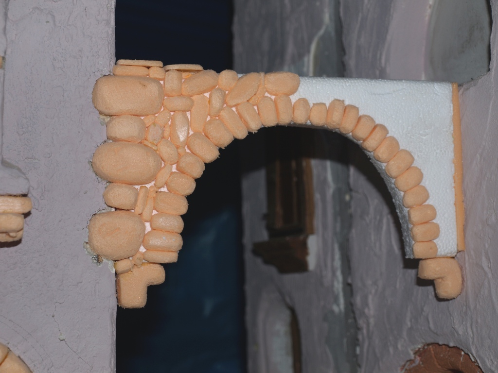 colores mas usados, gris oscuro,marron,ocre y marfil. La base con gris oscuro y algunas zonas marron, a continuacion veladura de ocre, la siguiente ocre mezclado con marfil y algunas zonas de marfil solo.verde mezclado con marron para humedades.Un saludo