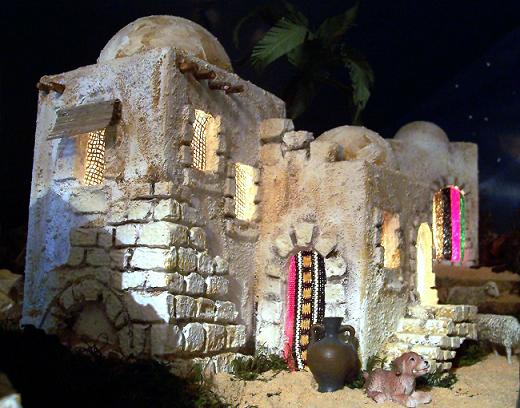 Hola compañero EnnriQue!! Yo las casas las hago con cartón. Elijo pequeñas cajas que se ajusten a la forma y tamaño que quiero o simplemente las voy recortando sobre la marcha. Las puertas y ventanas quedan a tu imaginación...Los ladrillos, zócalos, cornisas las puedes hacer con trozos de corcho blanco, o, mucho más recomendable por el acabado, con porex. Las cúpulas puedes hacerlas con bolas de corcho cortadas por la mitad. Luego puedes darle textura a las paredes con arena revuelta en pintura o con escayola.