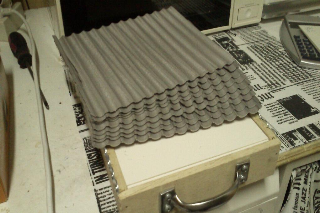Hola, os presento esta maquinita que esta inspirada en una que he visto de Pedro Mainz (ABP), la suya es para hacer tejas y la mias es para ahorrar el hacer unas cuantas, se trata de hacer una especie de "Onduline" para no tener que poner las tejas de abajo, con lo cual nos ahorramos la mitad de las tejas que tengamos que hacer.