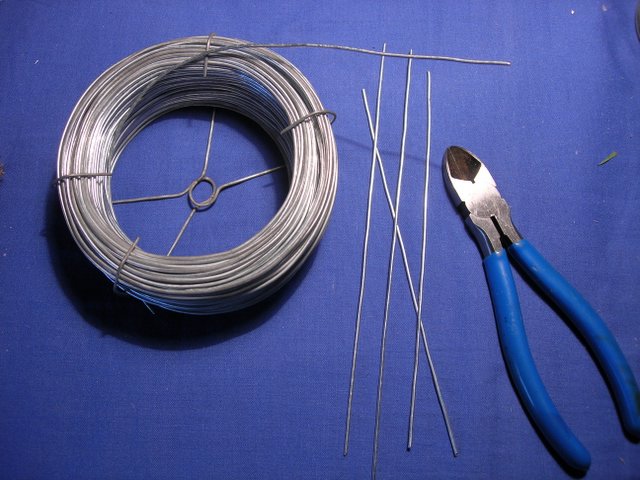 Paso 1º : enderezar y cortar los alambres con unas medidas entre 15 y 20 cm. (Foto nº 1).