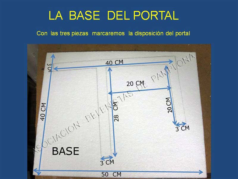 Una vez cortadas las piezas ,en la base las colocaremos ,como vereis en la foto ,ligeramente girado sobre la base y dejando un espacio ,no mucho en lo que va ser la parte trasera del portal .