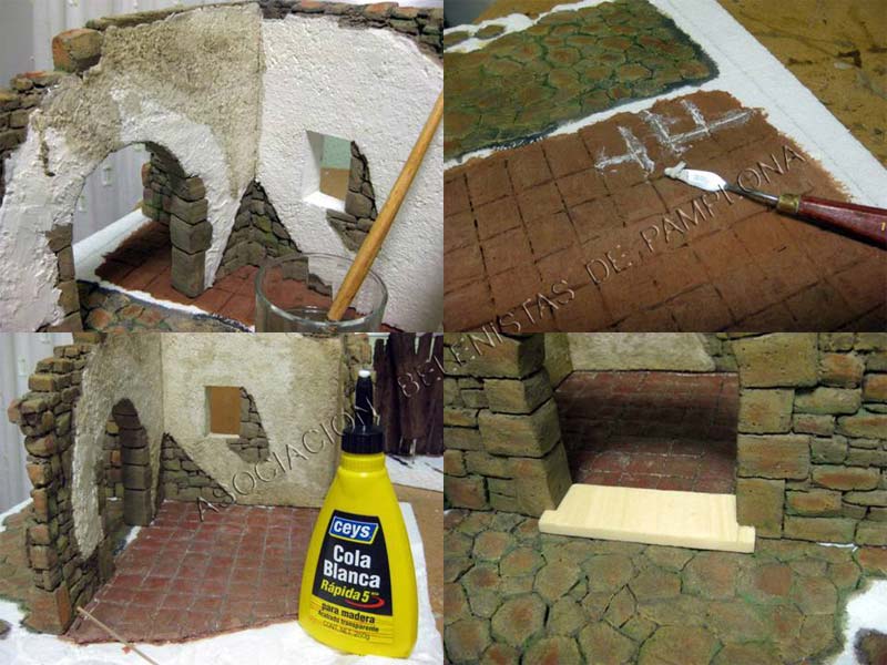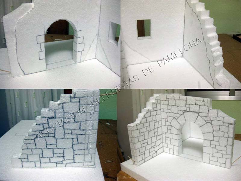 Aprovecho este post ,para comentar la ultima foto ,una vez pegado el portal a la base ,comenzamos con el tallado del suelo ,emplearemos el cúter y el soldador ,mas adelante veremos la forma de hacer rocas y piedras en la base .