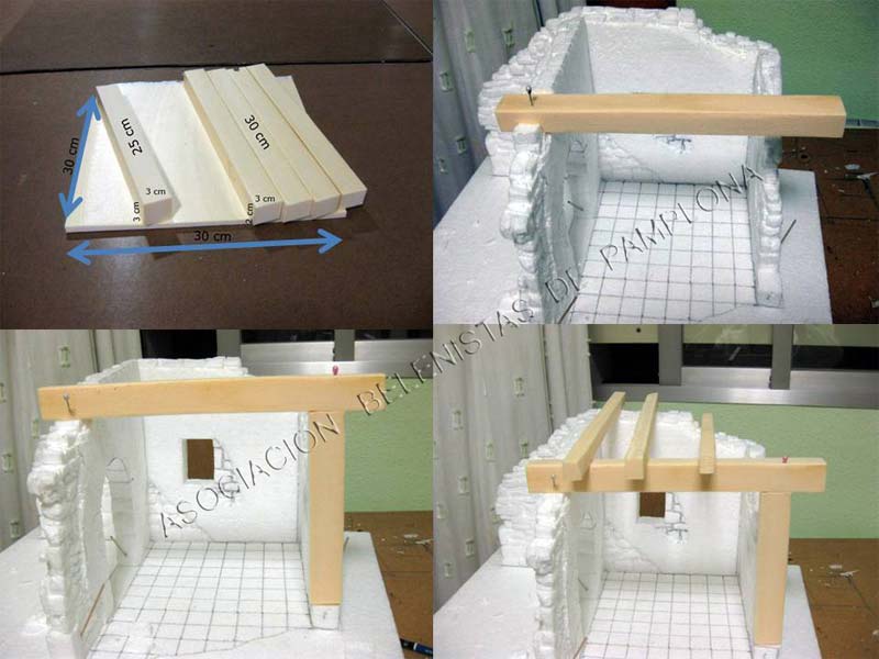 En la viga que hace de soporte en la parte baja la pondremos sobre una piedra ,que previamente habremos calculado en la pared derecha ,esto es para que la viga no toque el suelo directamente ,pues se pudriría .