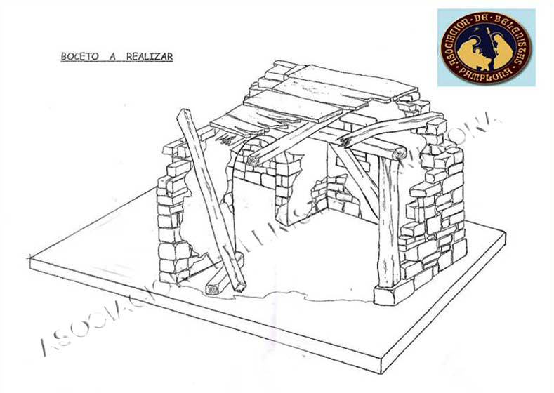 Lo primero que os voy a mostrar ,es un boceto de lo que vamos a realizar ,es fundamental que a la hora de hacer un belén ó un pequeño trabajo ,partamos de una idea ,bien sea un dibujo ó una fotografía y lo adaptamos al espacio  que dispongamos  y algo muy importante al tamaño de figuras que vayamos a colocar .