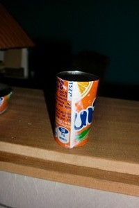 Con la misma chapa de la lata o con un tubito de unos 6 milímetros para hacer el tubo del tiro